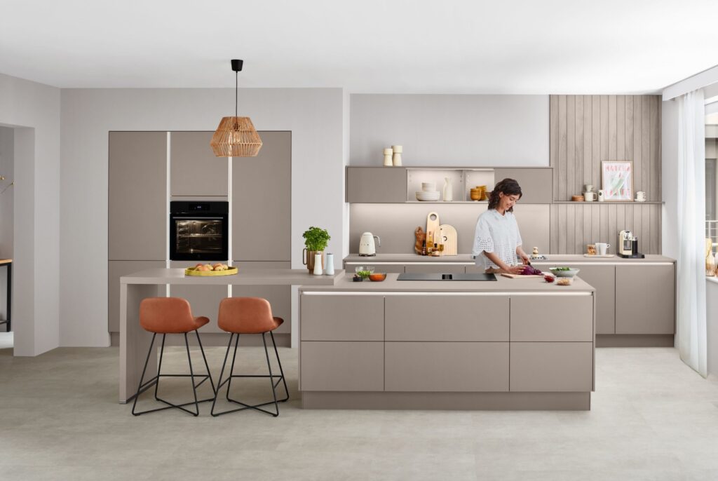 Cuisine design beige épurée : sur mesure dans la Drôme