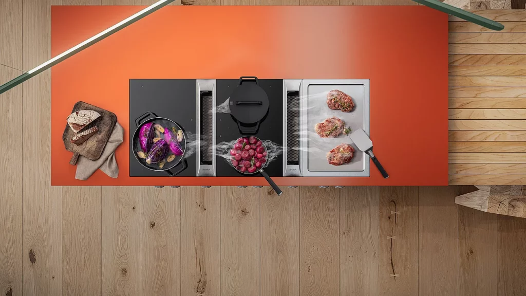 Autre acteur incontournable de l’électroménager de luxe, BORA révolutionne le marché avec ses systèmes de ventilation innovants. En intégrant directement la hotte aspirante dans la plaque de cuisson, BORA permet une liberté de création inégalée. Fini les hottes encombrantes suspendues au-dessus de l’îlot ! Désormais, l’air est aspiré directement au niveau de la source de cuisson, rendant votre cuisine à la fois plus fonctionnelle et plus esthétique.